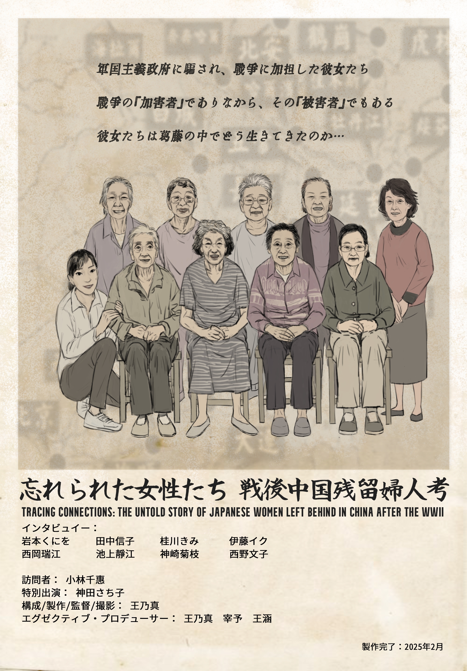 “战争与人性”,是王乃真教授持续关注的领域。作为“战争与人性”现实载体的“残留妇人”,无疑成为其近十余年研究的重点。2012年,经哈尔滨日本遗孤养父母联谊会秘书长石金楷先生协助,王乃真教授正式开启探访“残留妇人”的学术旅程。历时十三年,行程超过三十万公里,走访十余位生活在中国和日本“遗华妇女”,基于超过2500小时影音素材编辑而成的纪录电影《战后遗华日本女性考—被遗忘的妇女们》,曾作为特别邀请作品,于2018中国(广州)国际纪录片节首映,并列入2019年东京国际纪录片节特别招待展映作及2020年东京国际纪录片节•大阪特别招待展映作品片目。在2018年至2025年间,不同剪辑版本的《战后遗华日本女性考—被遗忘的妇女们》先后获得中国高等院校影视学会“学会奖”、中国纪录片学院奖、中国民族学学会影视人类学分会学术成果推优活动、中国口述历史国际展、Latitude Film Awards(纬度电影奖)等国内外专业赛事、展览肯定。此外,王乃真教授创作《战后遗华日本女性考—被遗忘的妇女们》的经历,也被中央广播电视总台、日本广播协会等知名媒体报道。
